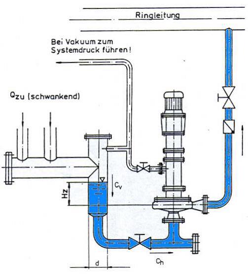 Beispiel: Schwankende Zulaufmenge Q zu = 0 bis Q zu = max ( Pumpe mit Selbstregelverhalten )